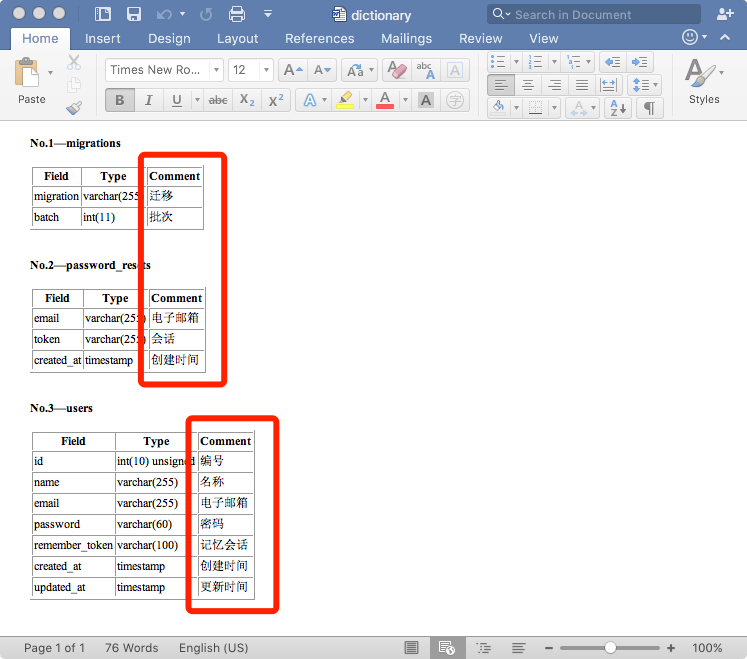 2.开发了的数据库字典生成工具,直接生成数据库字典