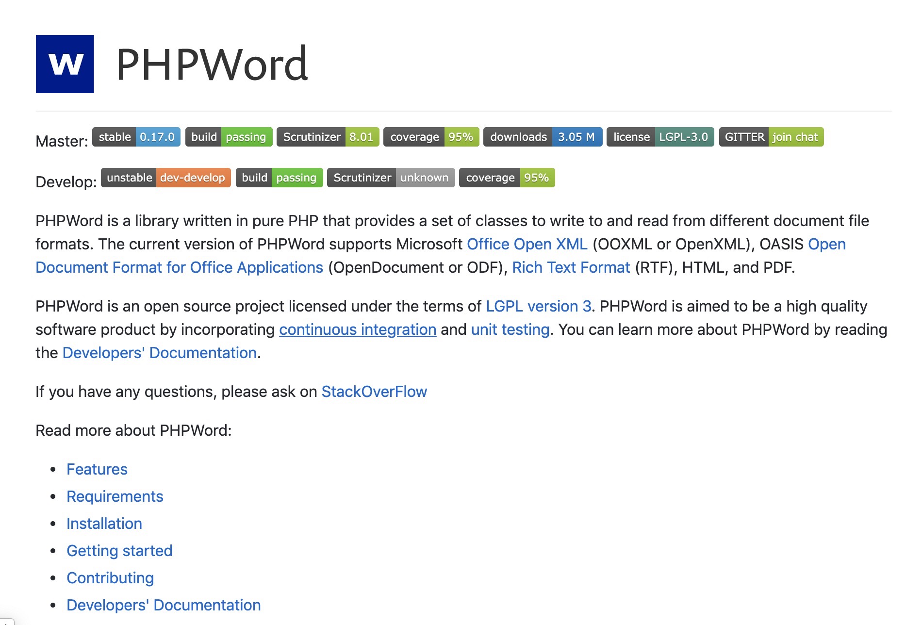 PHP生成Word文档,ODT文档,RTF文档 源码地址: https://github.com/PHPOff […]