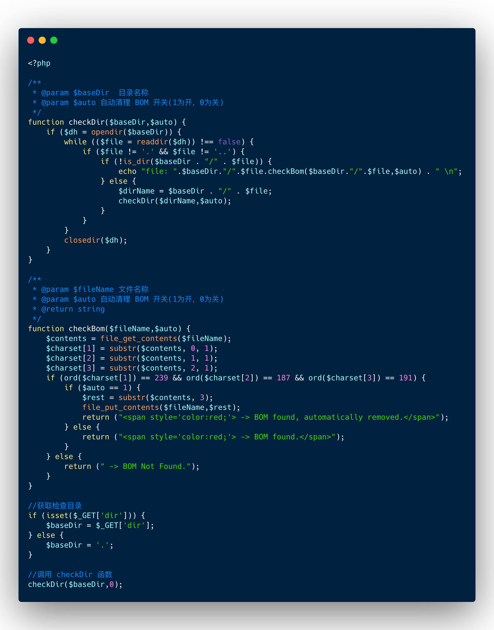 新建文件checkbom.php <?php /** * 文件BOM检查 */ // 0:不自动清除BO […]